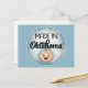 This funny postcard features a cute white baby face that says "Made In Oklahoma" on a blue background. Perfect for new baby announcements or just for fun.