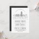 A unique wedding invitation for a marriage taking place in the beautiful city of Oklahoma City, Oklahoma. This invitation features a stylised illustration of the city's unique skyline with its name underneath. This is followed by your wedding day information in a matching open lined style. On the reverse side of the invitation is a deep grey colour to complement the look and feel. All individual elements of the invite card are unlocked so feel free to change or add any details necessary by using the customisation function. You can add a photo to the reverse side and add a black and white filter to it. Also, you can experiment with the many unique thicker paper types and cuts available. Matching RSVP cards, address labels, stickers, tote bags, and more are available. Have fun being creative and making it your own!