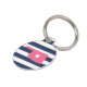 Let your furry friend show some home state pride with this cute Oklahoma pet ID tag. Design features a white silhouette map of the state of Oklahoma in pink with a white heart inside, on a preppy navy blue and white stripe background. Add your pet's name and contact information to the back in white lettering on a pink background.