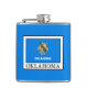 The flask itself is fine. It’s a cheap flask, obviously bought in bulk, however am prepared to overlook that. Given that it is a personalized item, I would have liked to have seen gift boxing instead of the generic packaging. Terrible printing, and/or quality. It’s a cheap, tacky vinyl. It is not cut straight and is also applied in a way that it is overhanging the bottom, causing the glue to catch on items and it will eventually roll and tear, damaging the wrap.