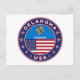 Badge of Oklahoma with flag of Oklahoma and flag of USA colours, rounded shape.