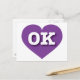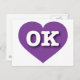This postcard features a vibrant purple heart containing the bold, upper case letters OK, the official abbreviation for Oklahoma, the sooner state. The reverse side of the postcard is blank, awaiting your personalised text or handwritten sentiments.