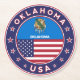 Badge of Oklahoma with flag of Oklahoma and flag of USA colours, rounded shape.