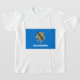 100% cotton so perfect for summer, It is a nicely designed t-shirt, the fabric is soft and the seams finished well, the body of the t shirt has no side seams. I bought a medium size for my two grandsons, aged 9 and 8 it will be slightly big on them but I would rather that than too small