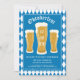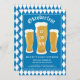 Oktoberfest (Octoberfest) festival party white typography blue Bavarian flag , celebrate the traditional German Bavarian beer festival. A modern mixed with rustic invitation with white Oktoberfest typography on blue diamond pattern Bavarian flag with illustration pints of beers and rustic typography.