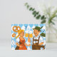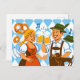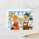 Oktoberfest Cheers with Bavarian Attire Holiday Postcard