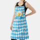 Oktoberfest Frothy Beer Mug Apron. Oktoberfest Beer Mug on chequered blue flag surrounded by a wreath of wheat.