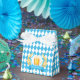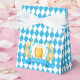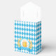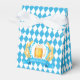 Oktoberfest Frothy Beer Mug Favour Box. Oktoberfest Beer Mug on chequered blue flag surrounded by a wreath of wheat.