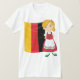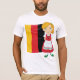 Oktoberfest is a great excuse for a party and it of course involves drinking. This design is a perfect oktoberfest one. It is of an oktoberfest girl. The is dressed very authentic and is holding a german flag. The girl has blonde hair and a waitress type outfit on. This oktoberfest girl design looks great on this mens t-shirt. Perfect for yourself or as a gift