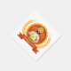 Fun Oktobefest napkin with a man in an Alpine hat with beer and pretzels with editable text.