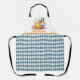 This vibrant AI artwork showcases a beer stein with pretzels alongside a woman in a traditional German Dirndl, making it the perfect design for Oktoberfest party aprons. The background and border feature the iconic Bavarian flag pattern, adding an authentic touch. Easily customise your party details by clicking the personalised blue button.