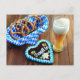 Oktoberfest with Beer, Pretzel and gingerbread heart. Bavarian breakfast.