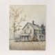 A jigsaw puzzle with an image of a 1920's dilapidated house in a field of tall grasses.
