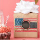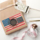 This unique design features a close up of the sound hole and strings of an old acoustic guitar with the flag of The United States painted on to the body. The six string guitar has an aged and worn look and is covered with scratches and scuffs which gives it a well used feel with lots of personality. This stylish design is perfect for guitarists, musicians and music lovers who want to show off their American pride.
