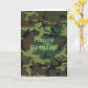 Birthday Old Age Military Green Camouflage Greeting Card. ⭐PERSONALIZE this template with your message. Add family names, etc. ⭐CUSTOMIZE IT further to make more changes. If changing the size, Edit or Customise it to ensure everything stays within the printing dashlines. ⭐TRANSFER this design to any product. Double-check that the size of the image does not have a ▲warning symbol. That means that the image needs to be scaled down. If you need help, contact Sandy at ✉ admin@giftsyoutreasure.com Visit all my stores at bit.ly/SandyspiderStores (cut and paste).