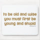 To be old and wise, first you have to be young and stupid. For Seniors and Retired or for those who are younger and want an excuse for the way their behaving. Funny and humourous sayings and quote about getting older and aging.