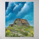 High-quality print of L. Holloway's acrylic painting: Barn and Wildflowers 3-2026