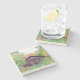 The coasters are gorgeous, a quality feel and heavy weight. They look like a precious archeological find. A rustic stone juxtaposed with a modern floral black and white print. I like the way the print goes slightly imperfect on the cut stone edges giving them a kind-of natural beauty.
