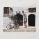 Postcard of an old bicycle and a white art store storefront in the city of Ostuni in Apulia, Italy.