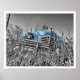 Old Blue Car in Field of Grass Poster