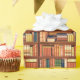 Custom wrapping paper featuring a vintage pattern illustration of wooden bookshelves filled with colourful old books. A fun gift paper for a book lover, avid reader, teacher, librarian, writer, or book store.