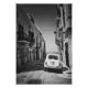 Photo print of an old Renault 4 car in a small street towards the sea in a small southern italian town, Polignano a Mare in Apulia, Italy in black and white.