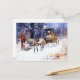 This design features an original Christmas painting by Charles M. Russell. It was completed in 1918. The painting shows a snowy landscape, and a reindeer that has been killed by a native American hunter, who is talking to an interested couple of white Americans who are riding in their horse and carriage. The design symbolises the unity of different communities in celebrating Christmas. Charles Russell was an ardent advocate for the rights of native Americans.