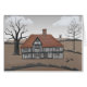 Colourful artwork of an old timber-framed farmhouse in the English countryside, with an old windmill in the background, and some crows who have come to visit. Perfect for anyone who loves folk art.