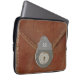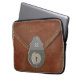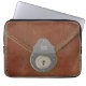 This laptop sleeve gives the impression of an old document case with the contents secured by a metal lock on the flap.