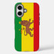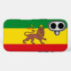 Historical flag of Ethiopia; red, golden and green horizontal stripes with Lion of Judah with a crown and spear in the centre; used from 1897 to 1974