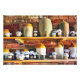 A peek inside the cook's pantry from Tudor and Victorian times. Full of preserves, jams, jellies and flagons of wine. Watercolor. England.