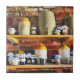 A peek inside the cook's pantry from Tudor and Victorian times. Full of preserves, jams, jellies and flagons of wine. Watercolor. England.