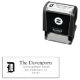 This Old English return address self inking rubber stamp features your monogram letter on the left in Old Englishfont.  Your family name in bold at the top.  If you live in an apartment or condo you may add the apartment or unit number in the third field of the template and include the city, state and zip all on the fourth field.  Use this stamp for letters, bills, outgoing mail, labelling your books, artwork and more.  This template is completely customisable.  You may change the fonts, text size and positioning.  This makes a great gift for newly weds.