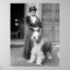 Woman with Old English Sheepdog at dog show, 1915. Repro of vintage photograph by Harris & Ewing. LOC original medium: glass negative.