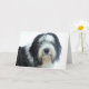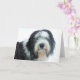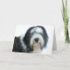 A super cute shaggy dog photo! This Old English Sheepdog gift has the dark gray and white herding breed in front of a white background. Adorable dog lover gifts!