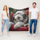 Old English Sheepdog Christmas Festive Fleece Blanket