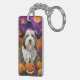 Old English Sheepdog Halloween Witch Pumpkin Key Ring