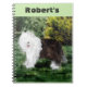 A custom notebook featuring a painting of an Old English Sheepdog in the garden, from my original glass painting. Perfect for dog lovers and this notebook is ready to be personalized with a name or your own text. ©Annabel Potter