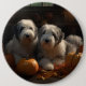 Old English Sheepdog Puppy Autumn Delight Pumpkin 6 Cm Round Badge