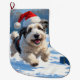 Old English Sheepdog Running in Snow Christmas Hat Large Christmas Stocking