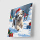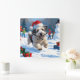 Old English Sheepdog Running in Snow Christmas Hat Square Wall Clock