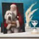 Old English Sheepdog With Santa Claus Festive Plaque