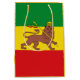 Historical flag of Ethiopia; red, golden and green horizontal stripes with Lion of Judah with a crown and spear in the centre; used from 1897 to 1974