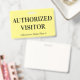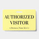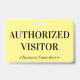 This classic badge design features the message "AUTHORIZED VISITOR", and a customisable company name or other custom message. A badge like this could be used to identify that somebody at a workplace or business is an authorised guest/visitor. [~Z0000307]