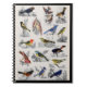 An old fashioned collage of vintage bird drawings. Colourful birds on a grey and black and white background. These drawings of finches, swallows, warblers, orioles, jays and more birds are from the vintage Arm and Hammer Baking Soda advertising card series Birds of America.