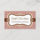 Chocolate brown and pink stripes decorate this vintage style business card. Customise this business card to suit your needs. Add or delete information, change the font style, font size, etc...The design is from original art. Use this stylish business card for a spa, salon, small business, home decor, event planner, bakery, candy shop, chocolatier, ice cream shop, coffee shop, cafe, candy store, catering business, etc...
