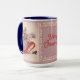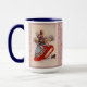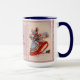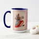 This mugis great for holiday decorations showing some of the fun of the season with a young Victorian couple and their little dog coming home in the snow from Christmas shopping.