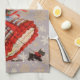 Old-Fashioned Christmas Shopping kitchen towel with light purple background, gold snowflakes, and our Victorian couple walking home from shopping with their little dog.