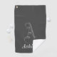 This vintage themed golf towel design has a personalised name and initial letter. A golf towel like this might be a fun personalised gift for somebody who enjoys playing golf. [~Z0000440]