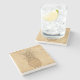 The coasters are gorgeous, a quality feel and heavy weight. They look like a precious archeological find. A rustic stone juxtaposed with a modern floral black and white print. I like the way the print goes slightly imperfect on the cut stone edges giving them a kind-of natural beauty.